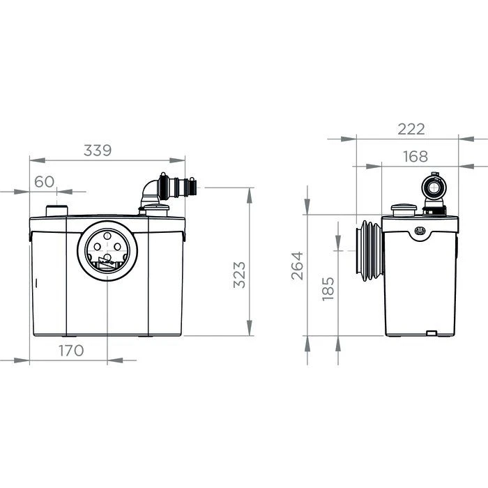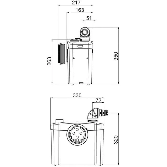 Évacuation : Ø 20 à 32 mm