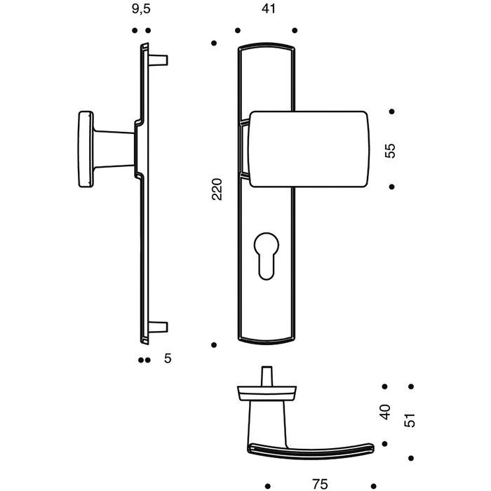 - Ensemble de poignées : 1 poignée de tirage et 1 béquille