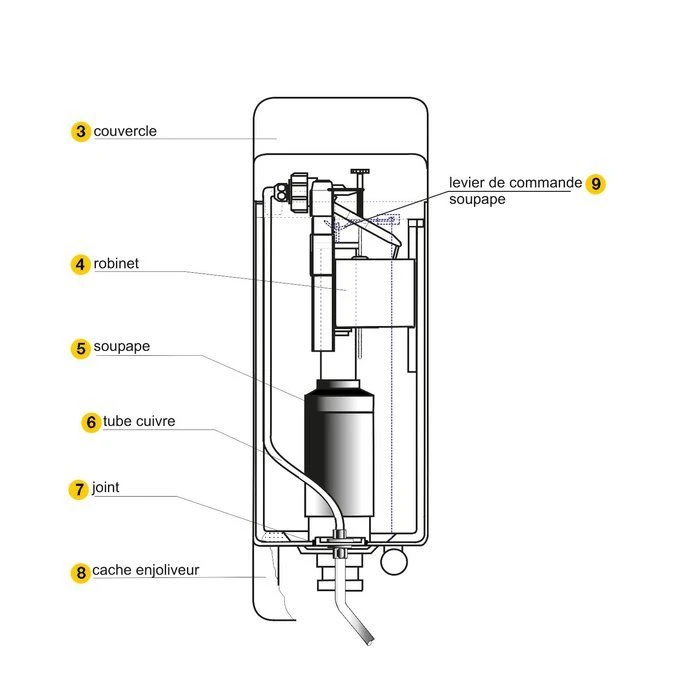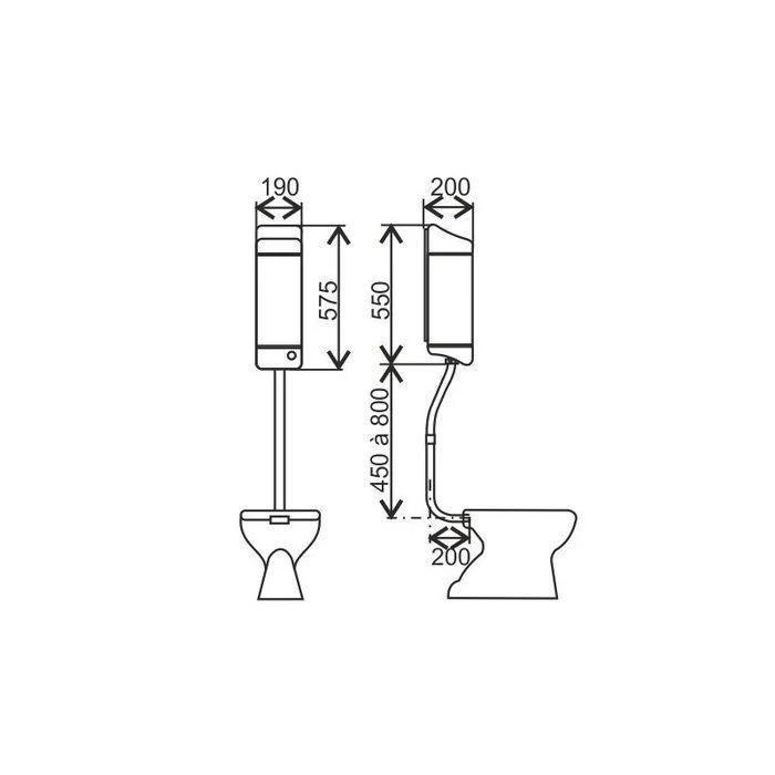 - Réservoir apparent semi-haut pour toilette à la turque